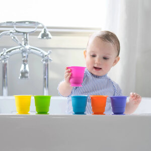 Složive čaše i laka grizala također pomažu. Ohladite sigurno grizalo u hladnjaku za dodatno senzorno iskustvo, a neka vaša beba istražuje čaše u kupki za jednostavno "napuni i isprazni" igru. Ova svakodnevna iskustva potiču fine motoričke sposobnosti bez potrebe za posebnom opremom.